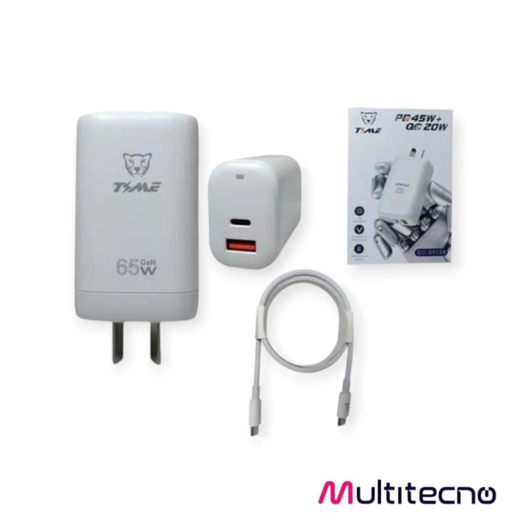 Optimiza tu carga con el Cargador Time 45W CC-59126, la solución ideal para mantener tus dispositivos siempre listos.